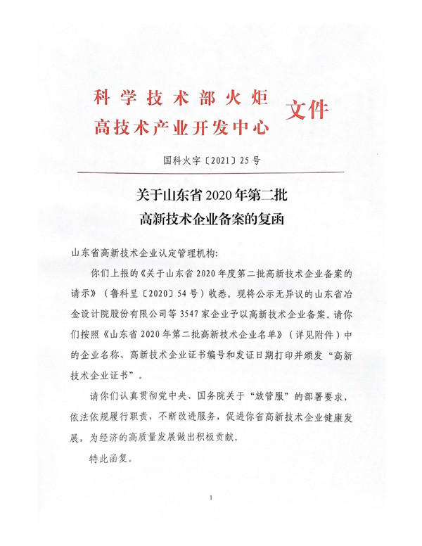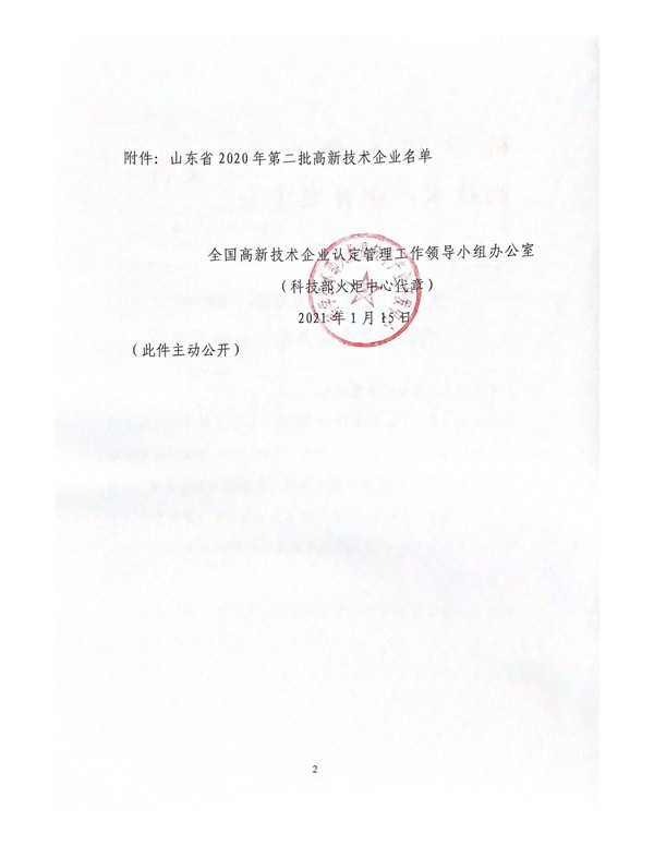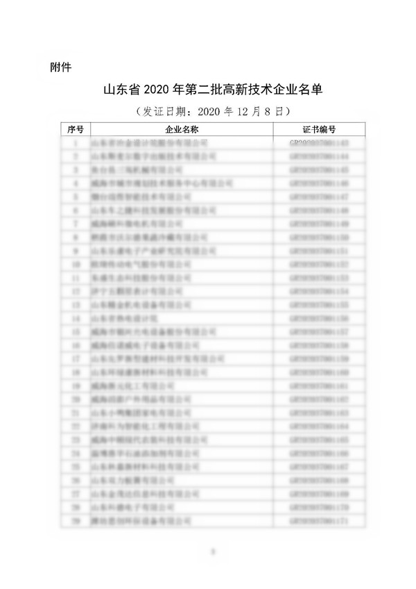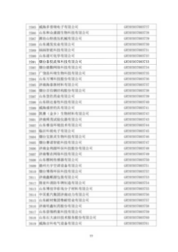 近期,全国高新技术企业认定管理工作领导小组办公室发布了《关于山东省2020年第二批高新技术企业备案的复函》(国科火字〔2021〕25号),并公布了《山东省2020年第二批高新技术企业名单》,烟台泰悦流体科技有限公司榜上有名,获批高新技术企业。